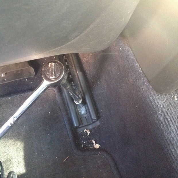 Elegir el asiento que desea hackear y desatornillar la barandilla del piso.  Desconectar los cableados eléctricos que y trasladarse a un área de trabajo bien iluminada.
