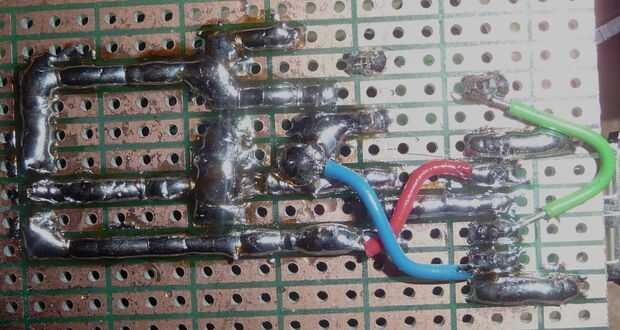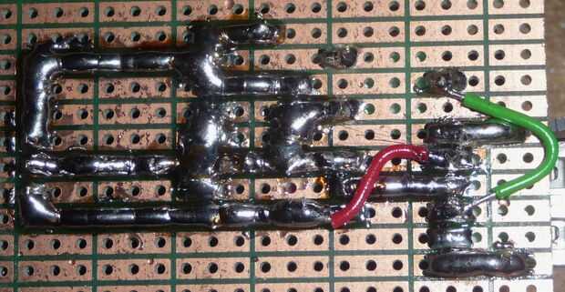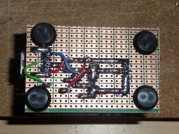 Ahora, todo de acuerdo con el esquema de conexión. Usted puede hacer esto poniendo un montón de soldadura en ambas almohadillas, y que las almohadillas de calefacción, así se fusionan. Puede que necesite utilizar algunos cables. Para las conexiones USB, mira la imagen final. Estos son los colores que desea utilizar, si utilizas un cable viejo en lugar de un conector de la pcb.