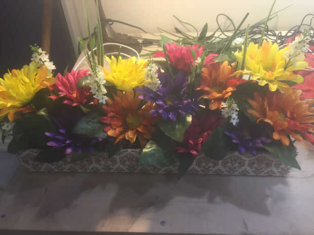 Usando cortadores de tijeras o alambre (alambre cortadores trabajo realmente bien aquí) sus flores cortadas a varias longitudes y empujarlos en su lecho de espuma de poliestireno. Demasiado fácil! Apenas dejan espacio para acceder al hub USB cuando termine.