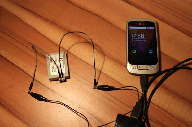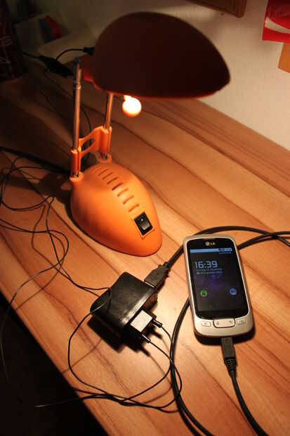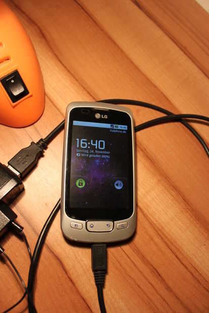 DANK dem Gleichrichter ist die Polarität egal und man kann das Handy sogar am Wechselstrom der Tischlampe cargado!