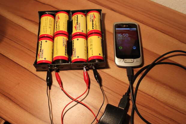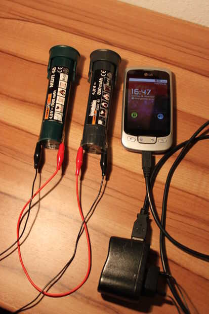 Man kann das notará un verschiedenen Quellen benutzen, P.e. normale Batterien / Akkus, Bohrmaschinenakku, Kameraakku,...