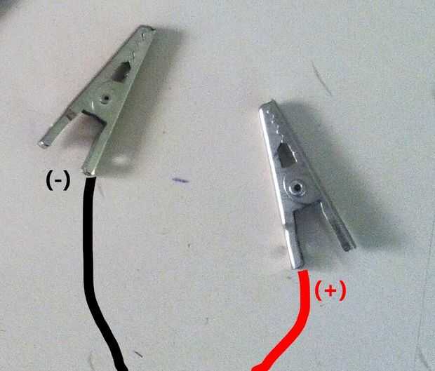 * Prueba de sujeción del ambos Cocodrilo clip en sus respectivas terminales de la batería de 12vdc (yo usé la batería de mi moto MF4-LB)