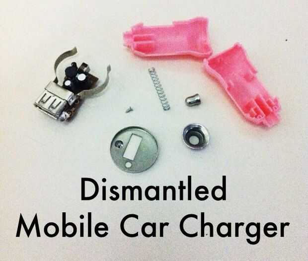 * Desmontar el cargador de coche como se ve en la imagen., diseño de cargador de coche más fueron construidos de esta manera creo.