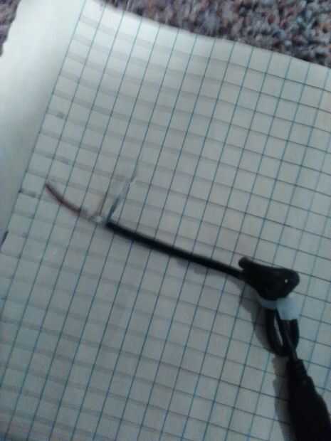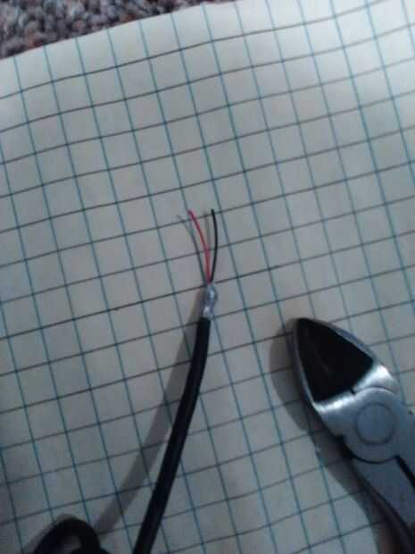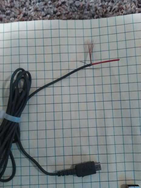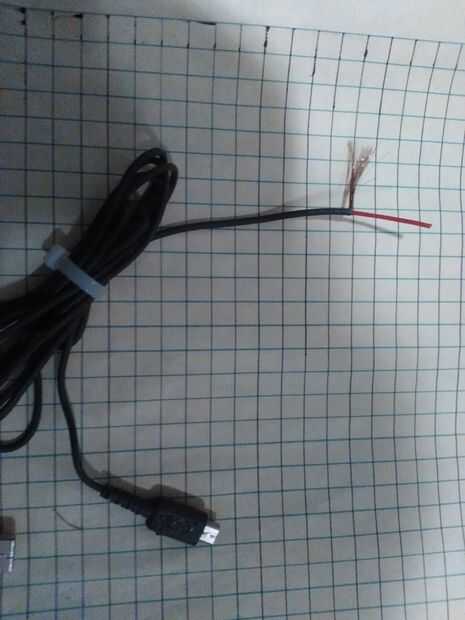 strip your cables down. del cable DS tira hacia atrás el aislamiento para revelar un cable rojo y un alambre de cobre. franja de aislamiento de los cables rojos de nuevo algunos. en el cable USB mantener los cables rojo y negro y recorte todo lo demás atrás. la tira de aislamiento de ambos.