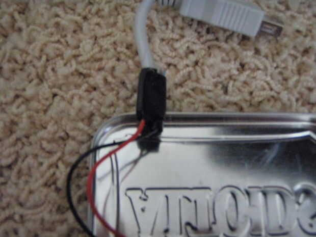 Dentro de las conocida altoids lata mentiras tres 2.200 mah baterías de iones de litio. Los tres se corrió en paralelo para crear una batería de 6.6 amp o 6.600 mah. Que triplica el tiempo de carga! Si una batería puede cargar su teléfono 75 por cien