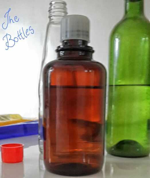 1) una botella de vidrio limpia con un corcho o un tapón de plástico. Puede ser claro o un tono de azul o de verde o naranja/amarillo/marrón.