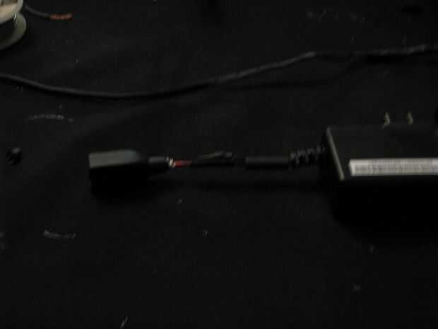 Porque corté accidentalmente mi demasiado corto los cables en la parte del cargador AC, también he añadido 2 capas de cinta aislante para limpiarlo un poco y agregar algún alivio de tensión. PIC 3