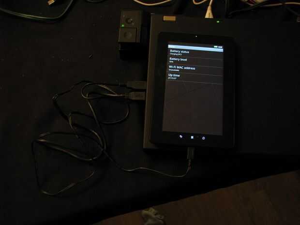 Enchufe el adaptador de CA, enchufe el cable USB micro modificado y enchúfelo en el Kobo Vox.