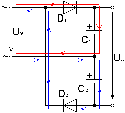 1. conectar 2 diodos y 2 capacitores (16V 100 uF electrolítico)