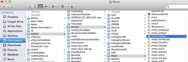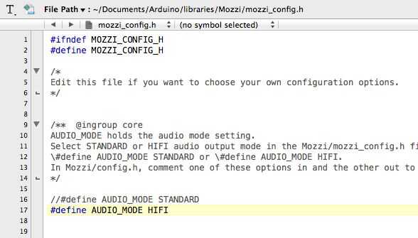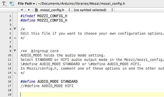Ahora tenemos que configurar un archivo en la biblioteca de Mozzi.
