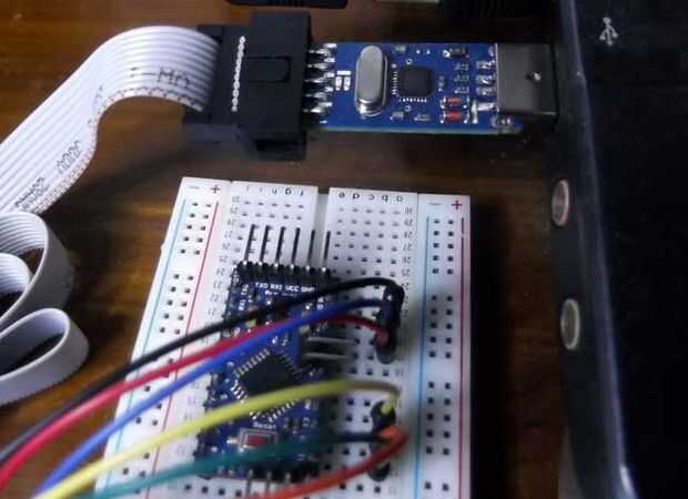 Sekarang kita siap untuk mengunggah sketsa / programa de kode. Colokkan usbASP ke rongga USB pada komputer Anda. Indikator LED (biasanya berwarna merah) pada usbASP akan menyala menandakan usbASP mendapatkan catu daya dan siap untuk beroperasi.