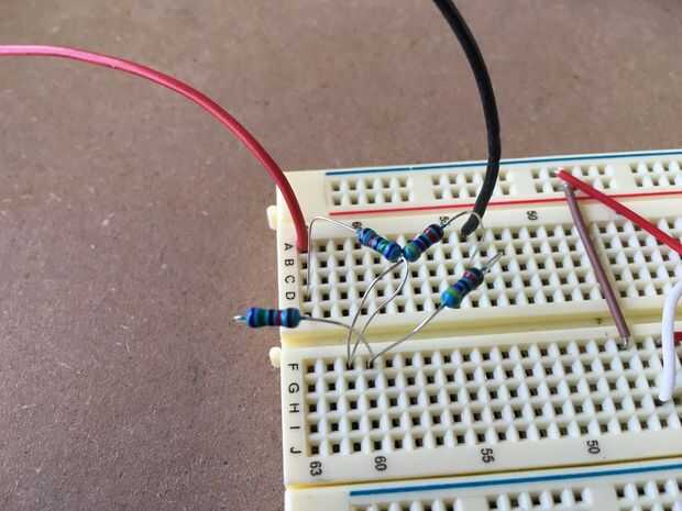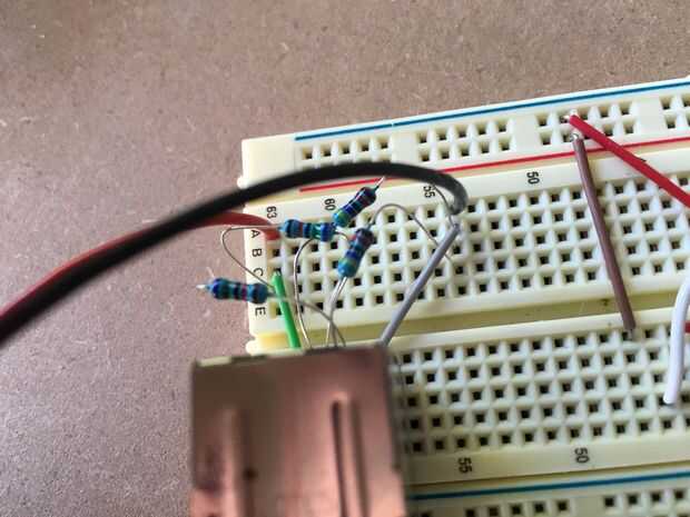 * Este circuito está diseñado para engañar a Apple iPhones pensando que están conectadas al cargador Apple genuino. IPhone de Apple necesita un sesgo 2v D + y D-pins. Estas son el centro de dos pins en el conector USB. Si tienes un teléfono Android, técnicamente puede omitir este paso. Esto será, sin embargo, inutilizar el cargador para iPhones y añadiendo aumentar compatibilidad del cargador.