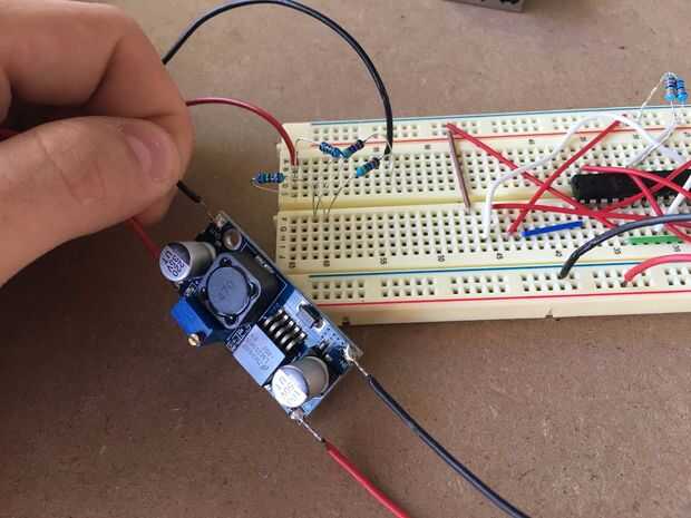 Siga el esquema que ha proporcionado arriba y construir el circuito en un protoboard para probar. El circuito es bastante simple así que no tendrás problemas. Se han construido el circuito, conectar la entrada del convertidor DC/DC de una fuente de alimentación de prueba y ajustar la tensión de entre 10v y 18v. Pasemos al siguiente paso para calibrar el convertidor DC/DC.