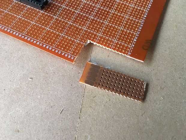 Coloque un pedazo de perfboard fuera de la hoja que es el ancho del puerto USB que está utilizando. Asegúrese de mantenerlo más tiempo entonces el puerto USB para que tengas espacio para añadir las resistencias.