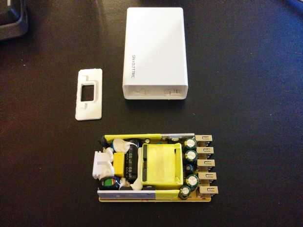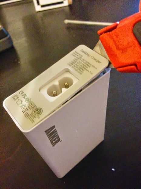 Después de muchos intentos pude encontrar que se puede quitar la parte de plástico donde está el conector de CA.