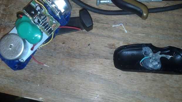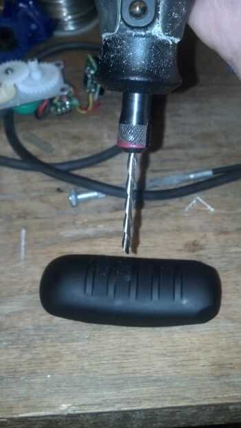 Taladrar un agujero en la pieza negra izquierda frontal, cerca de los LEDs, coloque el conmutador y séllela. En línea con la red de alambre cable (o cable amarillo, que está alcanzando más en el ojo). Vuelva a montar la unidad y cerca de todo.
