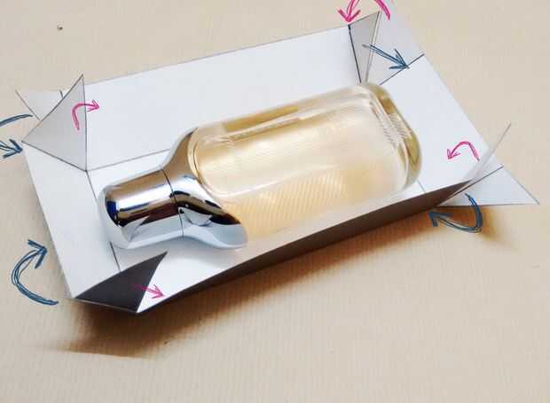Comience doblando para que la caja de la forma como se muestra. Pegue los bordes triangulares a los lados de la caja para sujetar las orillas.