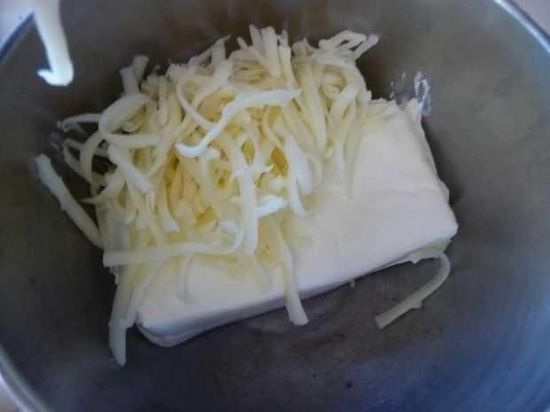 Combinar el queso crema ablandado y mozzarella rallado en un tazón mediano. Revuelva para combinar.
