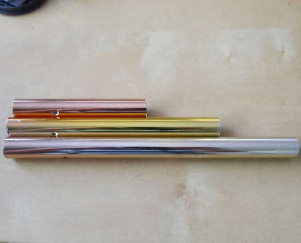 he podido caber tres varillas de metal debajo de la base de la luz solar.  Tuve que cortarlas para que su longitud disminuida proporcionalmente. Perforé dos agujeros frente a la unos a otros en el extremo de cada varilla (a 1 cm del extremo) para colgarlos.  Perforé algunos agujeros más grandes adicionales a lo largo y alrededor de la longitud de las barras de la luz volver a salir.