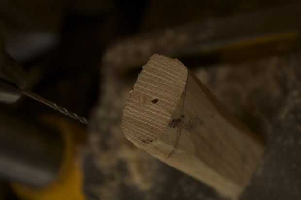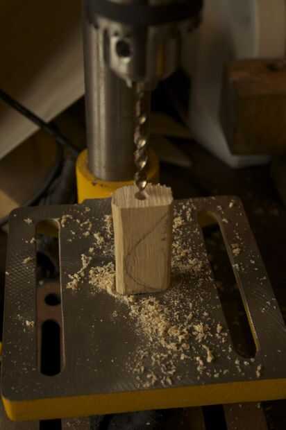 parte inferior de cada pieza con la broca más grande cree que puede salirse con la. Usé una broca de 7mm que creo. Taladro hasta dejar aproximadamente 1cm desde el borde más lejano de su marcado diseño (no necesariamente el borde de la madera). Marcar la broca con cinta adhesiva esto hace más fácil. Lo recto es lo importante.