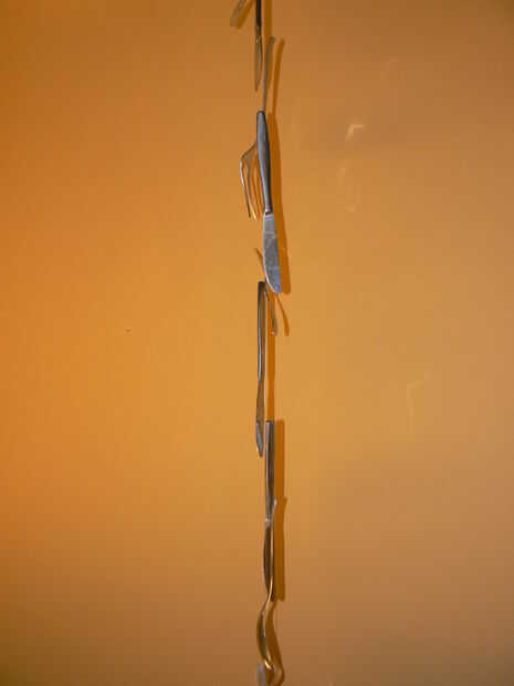 -Atar los cubiertos debajo de uno al otro, pero asegúrese de que no están demasiado alejados unos de otros pero también no demasiado cerca, esto hará un efecto de sonido agradable.