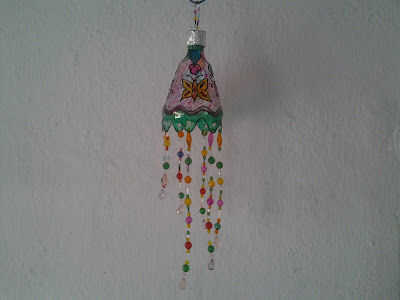 rollos de un encantador carillón de viento creada a partir de residuos de cartón pintadas...Artículos que necesitas:1. cartón rollos de paquetes de papel de aluminio2. madera abalorios3. acrílicos colores4. campanas, baratijas, campanas5. colores hil