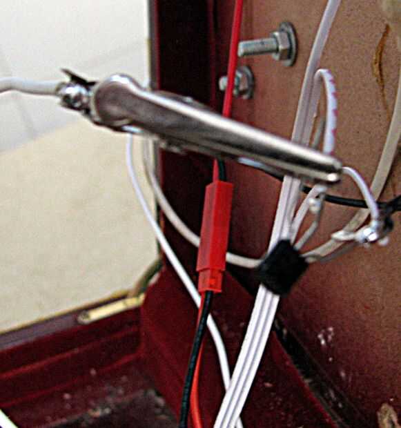 Foto 3: espectáculos transistor conectado al PIR, negativo de batería y uno de los terminales del motor. Drenaje del transistor, puerta y fuente se indican en el esquema de cableado. Usted podría ser capaz de usar un simple transistor de NPN 2n2222 si el motor no dibuja mucho actual. No uso circuitos como solamente tenía dos componentes. Le enchufamos el PIR en el arnés de cableado que también rescatado de la unidad de DVD. Lotes de piezas buenas en estas unidades.