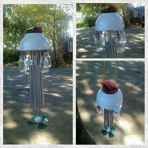 esto es un carillón de viento que se hace casi exclusivamente a partir de elementos reutilizados. Los únicos materiales que no empezó la vida en otra forma son la línea de la pesca y la argolla que cuelga del. Estoy reconstruyendo cómo he construido