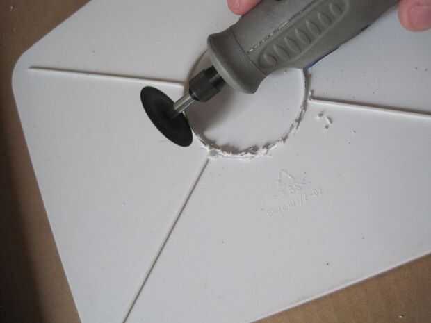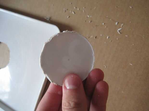 Para este paso hacia fuera estará cortando las piezas que ayudan a atrapar el viento y golpear el carillón se. Puede utilizar cualquier material que te gusta para estas piezas. Tenía un viejo pedazo de plástico de la mini nevera poner alrededor así que decidí usar eso. Ya tenía un patrón de círculo en él así que corte solo y una pieza triangular hacia fuera. Una vez que ambos se cortaron, usé un taladro hacer un agujero en el centro del círculo y la parte superior para el triángulo para colgar.