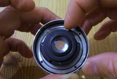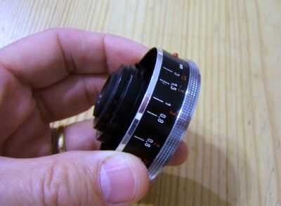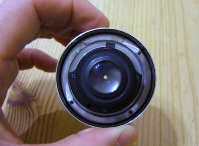 No hay matemáticas involucradas en este método, sólo mantener la lente hasta el cuerpo y mirar algo en el infinito a través del visor (algo más de 50 metros de distancia). Haz que la imagen en foco y la lente está en su distancia focal de brida. Algunos lentes tienen que ser tan estrecha que el espejo bofetada la lente cuando usted toma una foto. Algunos son hasta ahora lejos, necesita todo tipo de tubos feos para montar el objetivo a la distancia adecuada. Luckliy, este objetivo se sentó en casi la distancia correcta.