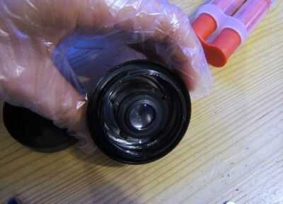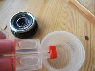 4. mezclar una pequeña cantidad de pegamento epoxy y tack el objetivo a la tapa del cuerpo.