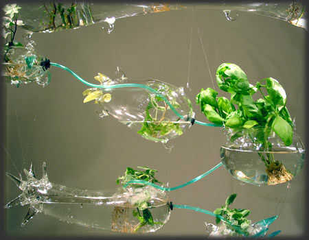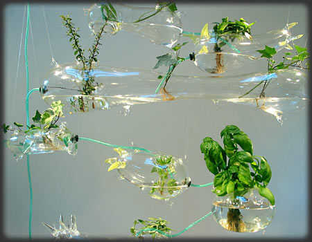 Hydroponic Solar Jardín es escultura por Amy Youngs en colaboración con Ken Rinaldo. Es un jardín hidropónico suspendido. Todos los recipientes de vidrio que componen los niveles del jardín son soplado a mano. A través de esta obra de arte que esperan que el interior jardines sostenibles podrían convertirse en alternativas a la agricultura industrial donde vegetales son cultivados en granjas de petróleo y transportadas en camiones a tiendas de abarrotes.