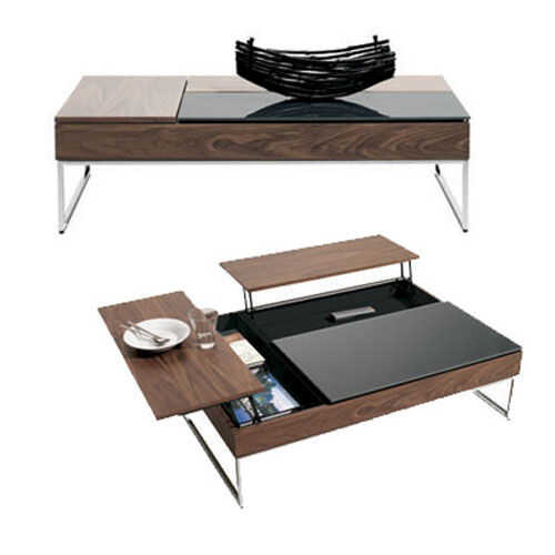 Esta tabla tiene tres usos: puede ser una simple mesa de café, puede almacenar libros y las solapas superiores pueden estallar hacia fuera para ser utilizado como soporte de la cena de TV... Para este desafío de construir una pieza de mobiliario o re trabajar una parte de su habitación o armario para guardar elegantemente tanto como sea posible mientras que sirve a múltiples propósitos.
