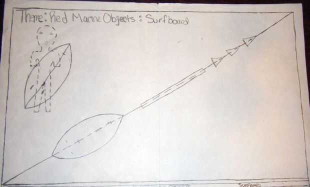 El tema de mi grupo fue "Marina objetos eso puede ser rojo". Diseñado, creado y construido una tabla de surf de cartón como mi traje para la escuela secundaria entre los niños para usar como disfraz en una producción del juego. El traje fue montado en cinco partes, utilizando construciton ranurada y el método de paquete plano. Para diseñar el traje, todos los miembros del grupo tenían que incluir un sistema paso a paso de instrucciones e ilustraciones sobre cómo hacer el traje. A través de la creación de las piezas del traje y el conjunto del traje, los miembros del grupo debían tomar fotografías de cada paso del proceso. El proceso de crear y armar el traje luego se publicarían en internet en la forma de un nuevo instructivo.