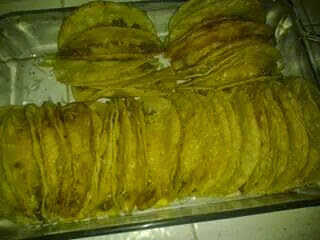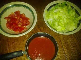 los ingredientes son: maíz, tortillas, conservas el roast beef, queso mexicano cuatro, pimienta negra, salsa de soja, ajo en polvo, el salsa de pato (el amarillo puede), tapatio, lechuga y tomates.