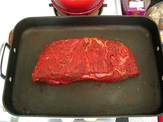 Simple para chuparse los dedos cocinada a fuego lento carne asada en su olla u otra olla. Nada de lujo, sin experiencia previa de cocina requerido y muy poco tiempo para preparar. La carne a la brasa primero, pero aún puede omitir este paso si tiene