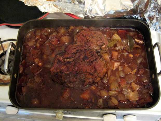 Simple para chuparse los dedos cocinada a fuego lento carne asada en su olla u otra olla. Nada de lujo, sin experiencia previa de cocina requerido y muy poco tiempo para preparar. La carne a la brasa primero, pero aún puede omitir este paso si tiene