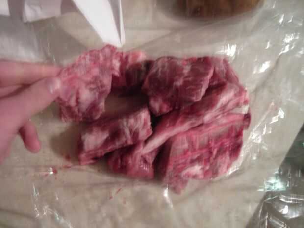 -una bolsa de huesos del cuello corte de carne de cerdo. (Has hecho esta receta con corvejones demasiado, sólo tiene que utilizar más mantequilla al principio).