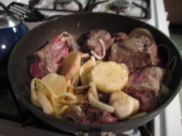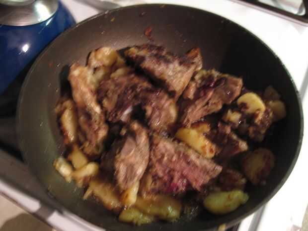 Una vez que la carne está completamente cocida y las papas son marrón y Fofo, se realizan cocina.