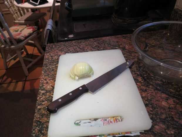 Cuadro 2. Dados a la cebolla finamente y reservamos en un bol grande.