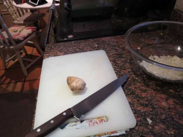 Cuadro 3. Rallar o picar alrededor de una pulgada de jengibre de entrega a la taza.