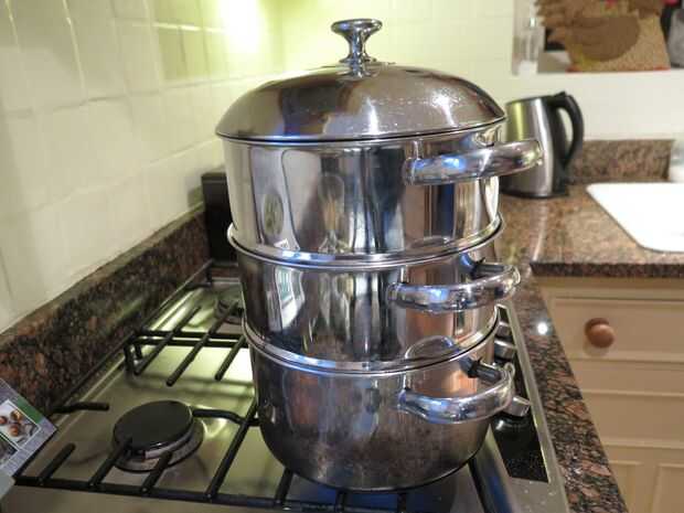 Estos Baozi deben ser cocidos al vapor sobre agua vigorosamente hirviente durante 20 minutos. Aquí he utilizado un vapor si no tienes acceso que también uno puede utilizar un colador que cabe dentro de una olla grande, o alternativamente un plato sentado en un recipiente. De estas alternativas se trabajan proporcionando que tiene un buen sello en la parte superior del pan.