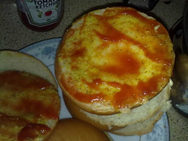4) luego se extendió algunos Ketchup encima la mostaza.