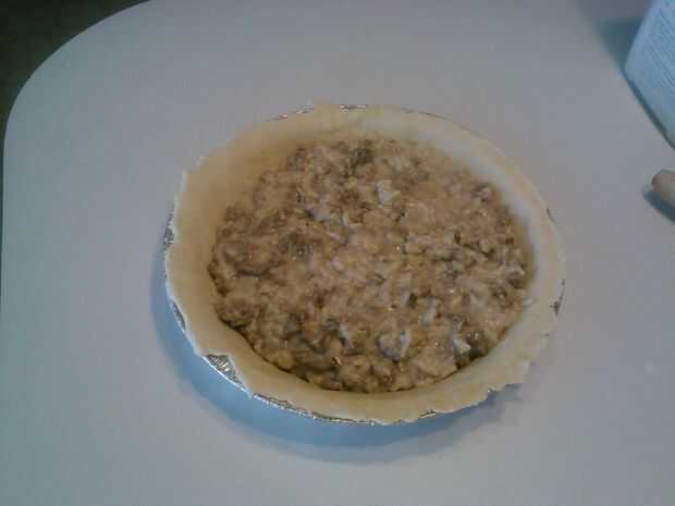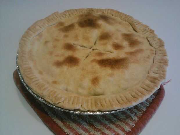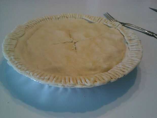 La transferencia de la corteza en su pie. Baje los bordes en su lugar y presione con un tenedor para sellar la empanada. Si te gusta, ahora también es el momento para hacer unos cortes en la parte superior del pastel.