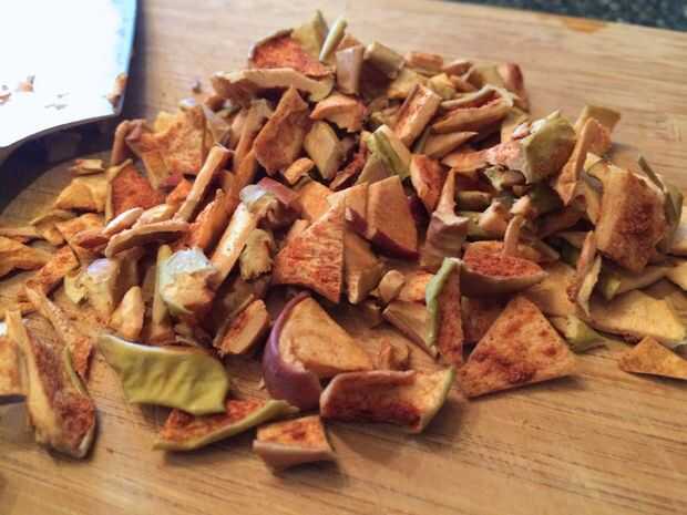 Picar las manzanas deshidratadas en trozos pequeños y mida 1/2 taza.