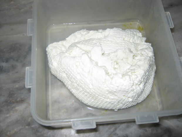 Llovizna en platos de servir y coloque un trozo de sandía en la parte superior. Añadir el requesón crumbles.