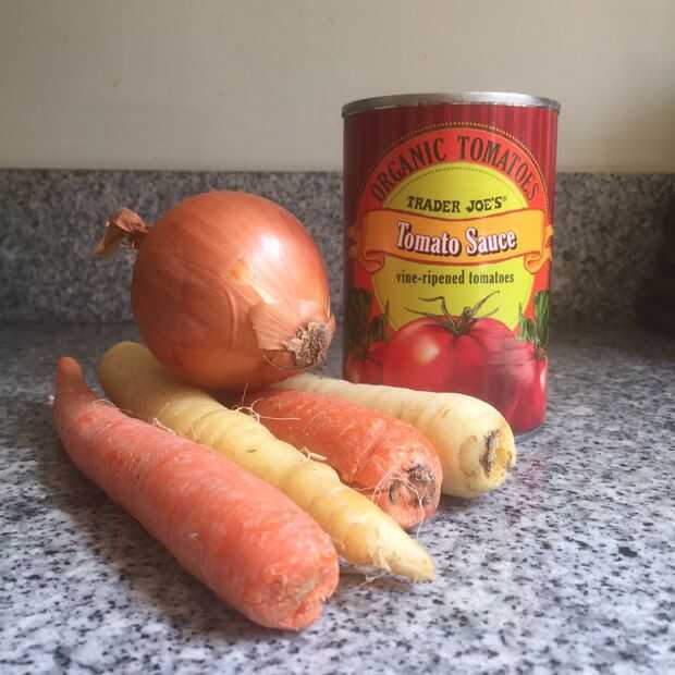 • 3-4 zanahorias, utilicé las zanahorias blancas y naranja aquí