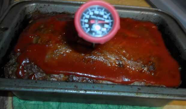 Hornear en un horno 350F (precalentado) durante aproximadamente una hora, el pastel de carne sólo había comenzado a tirar de los lados de la cacerola.