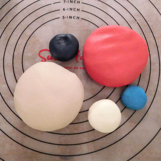Usted necesitará los siguientes colores de fondant y suministros para hacer estos toppers: