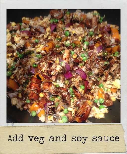 Se trata de un plato de arroz frito de huevo muy bien. Mi esposo es un gran fan de arroz frito. Esta es una versión vegetariana que es muy relleno. A veces queremos agregar pollo a la parrilla o tenerlo como un lado con el Lomo de cerdo marinado. Est
